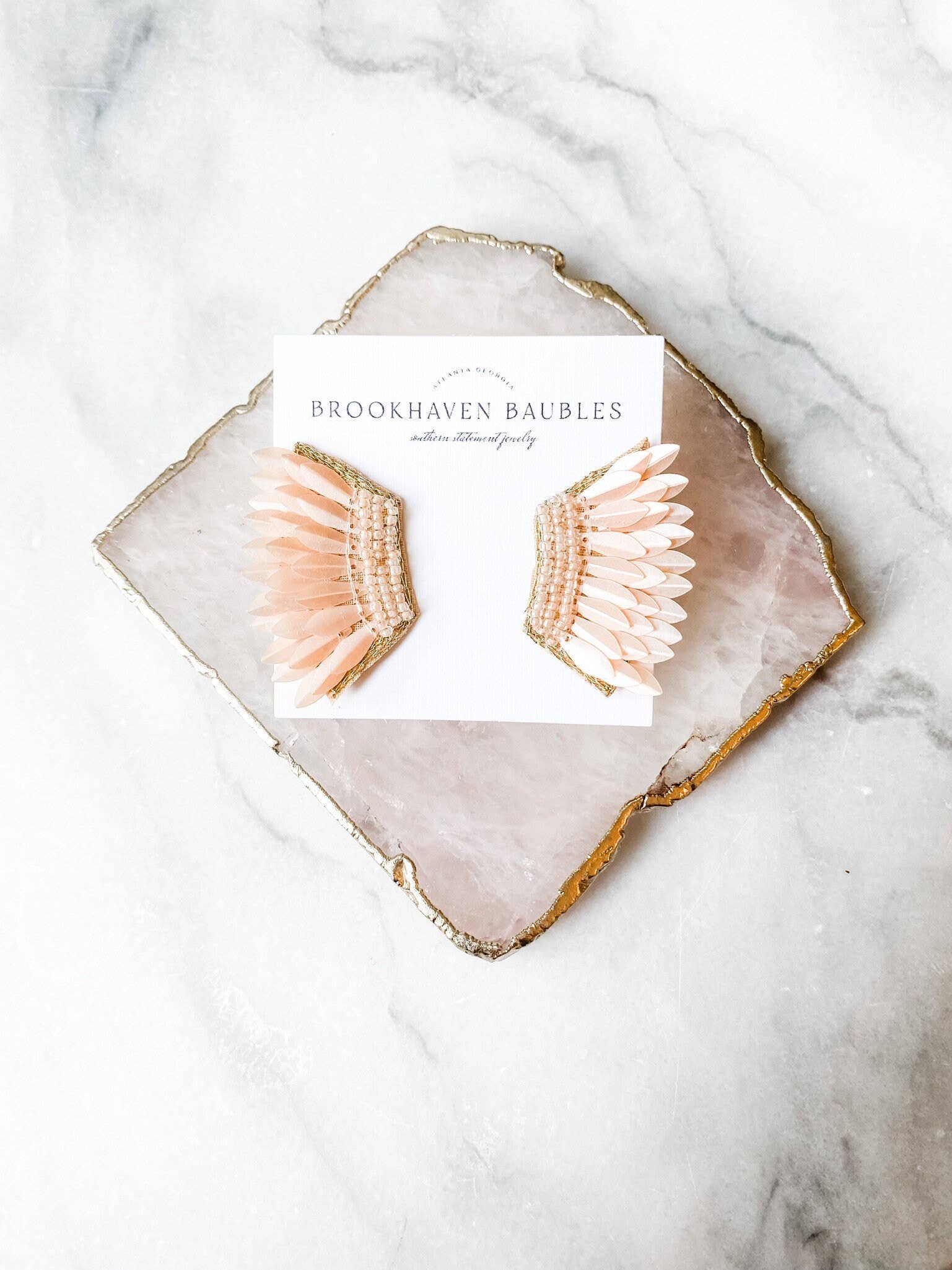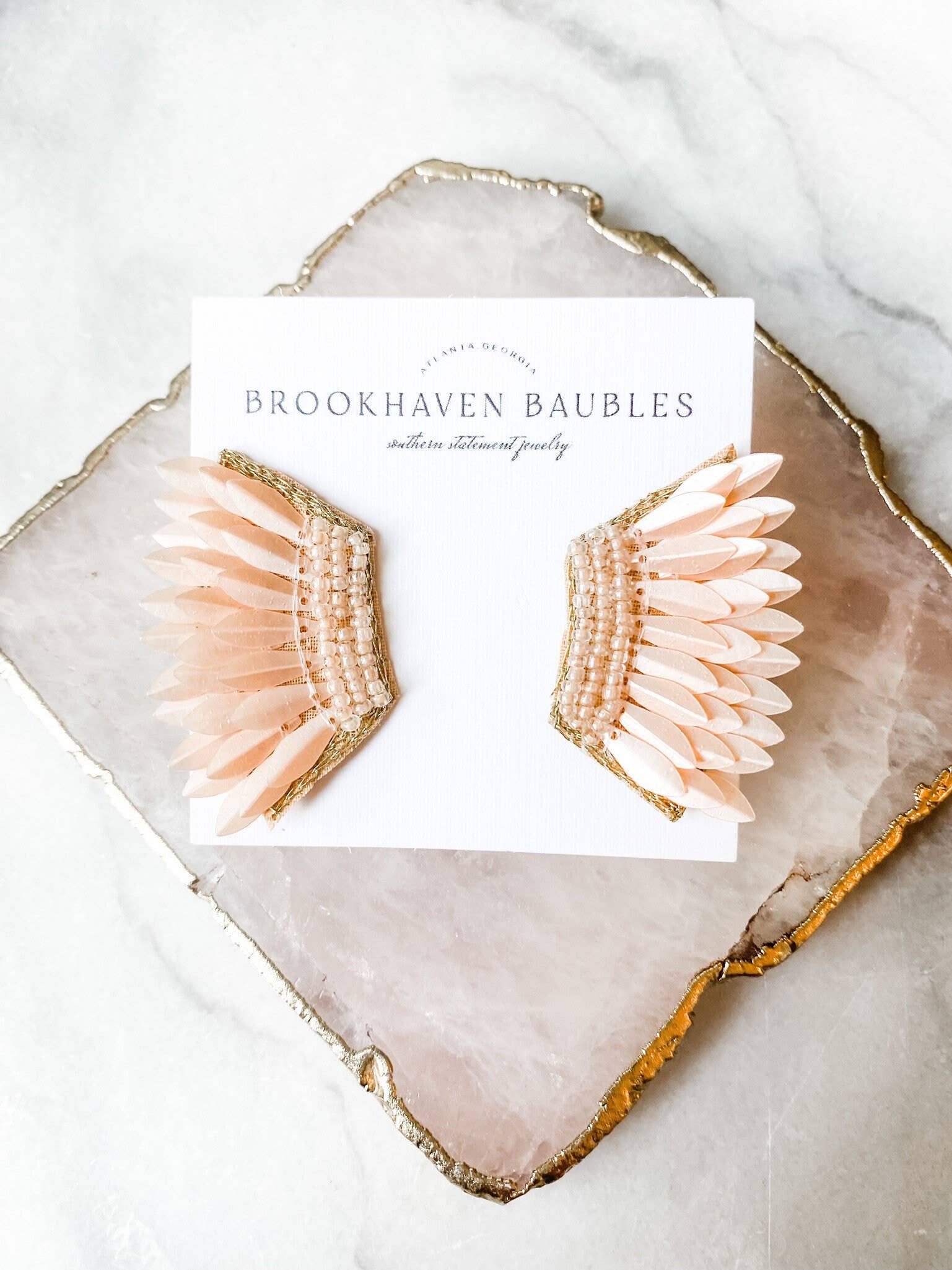 Blush Sequin Wing Beaded Earrings - Brookhaven Baubles - Southern Statement Jewelry - Beaded Statement Earrings