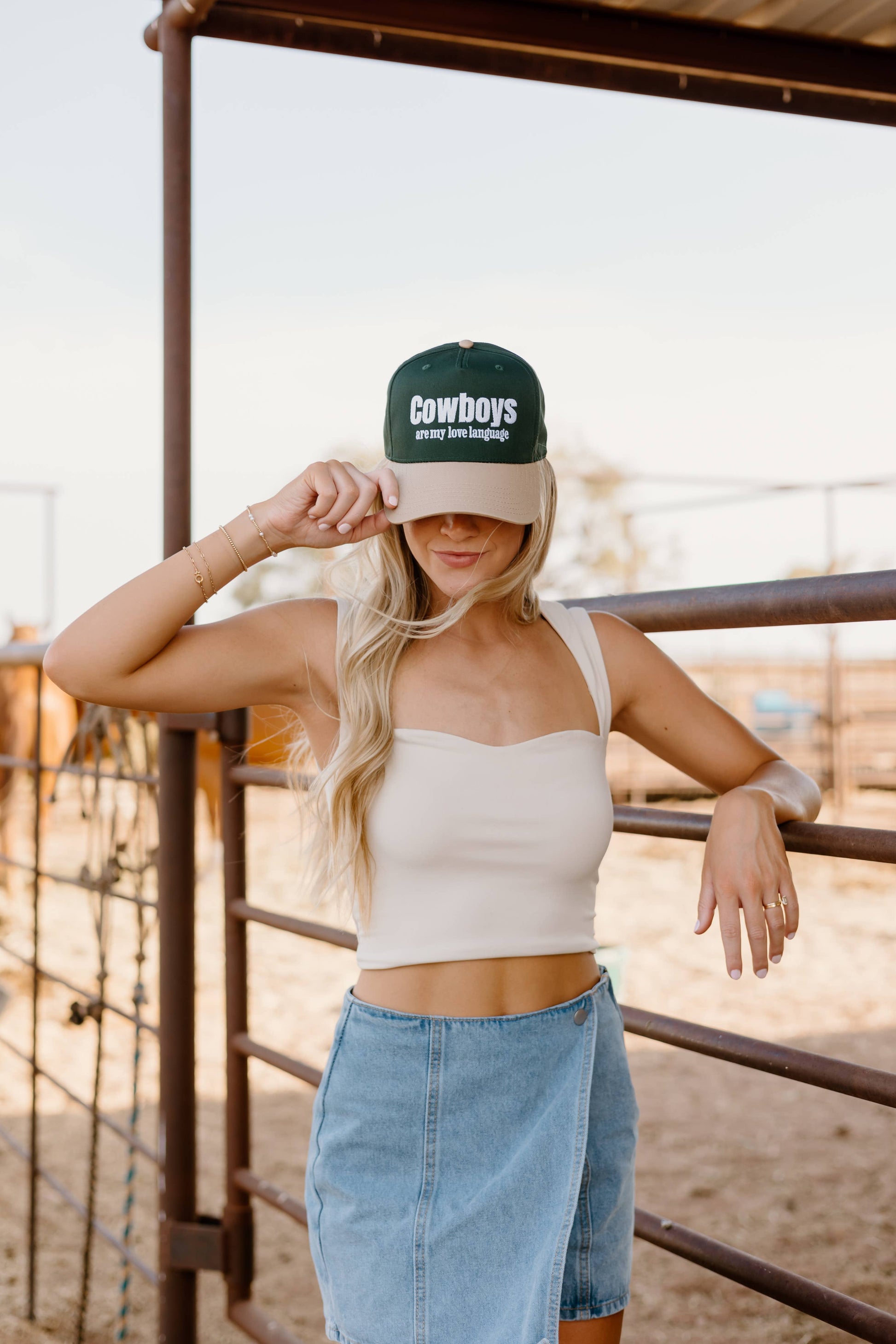 The girls requested. We couldn’t resist ✨✨ 🤠 green/tan vintage style trucker -white stitching hat.