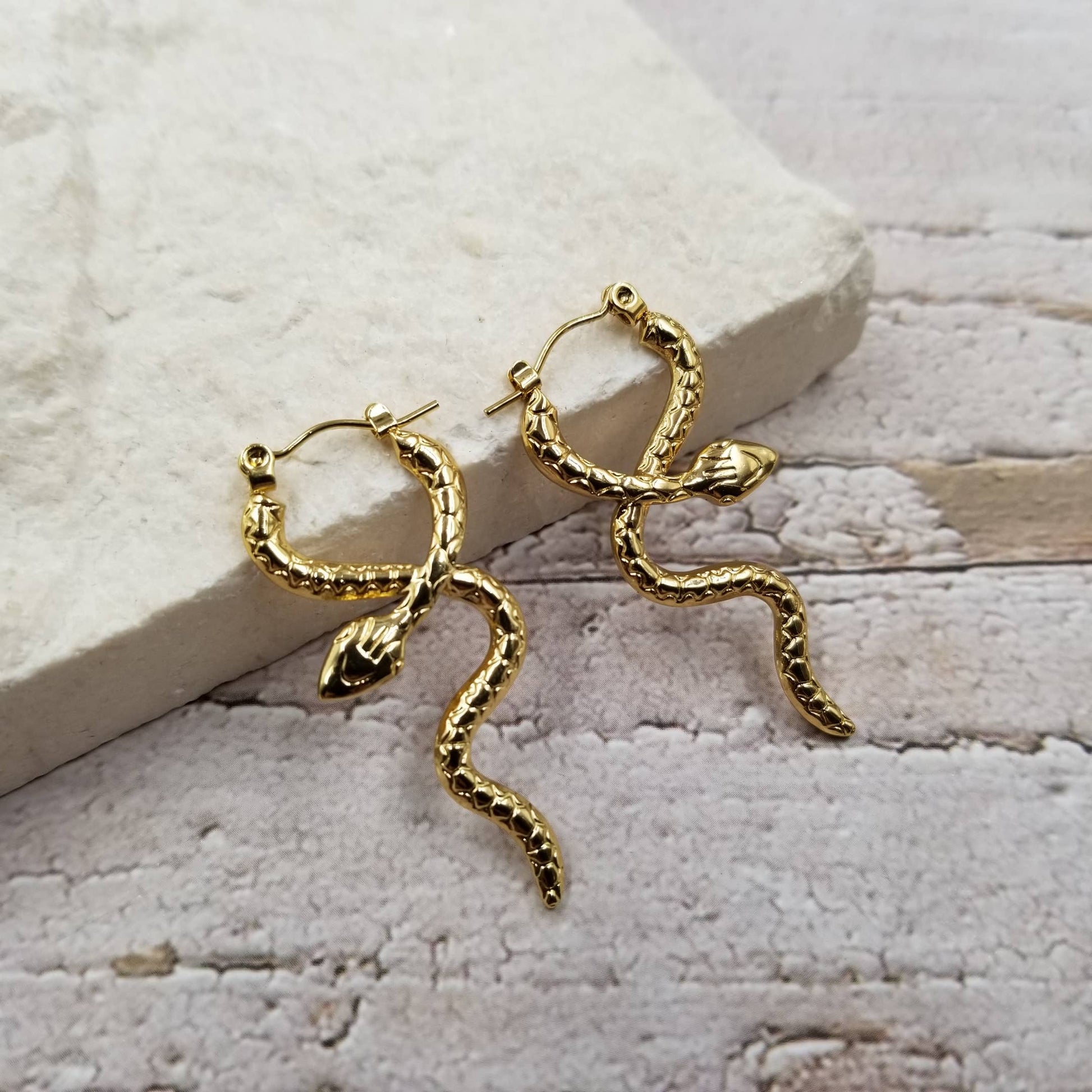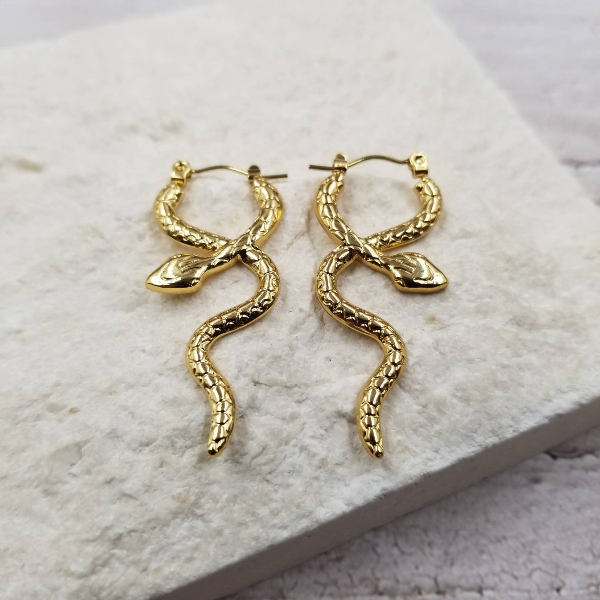 Earrings Size: 1.61 " * 0.62 " Weight :0.02 lb . Material: Stainless steel Color: gold